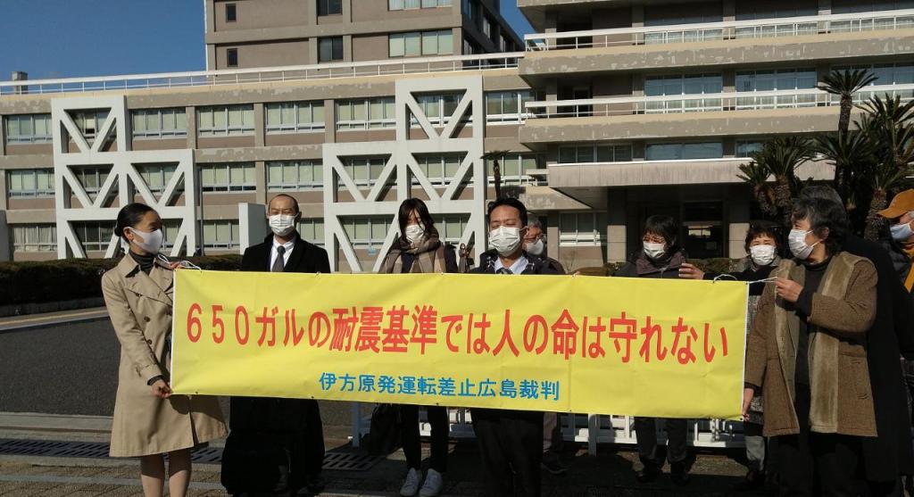 2月3日、広島地裁で伊方原発広島裁判新規仮処分の第3回審尋期日の取り組みが行なわれた。広島地裁前で審尋参加者らが記録撮影をした後、午後2時からの審尋に向かった。仮処分の審尋は非公開。コロナ禍で広島弁護士会館が使用できないため、記者会見・報告会はオンラインで開催された。