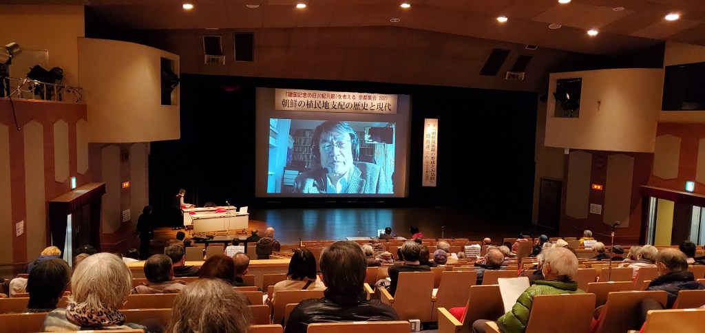 「建国記念の日」(紀元節)を考える京都集会2021年が、2月11日、京都市内で開かれた(写真左)。主催は2・11京都府民の集い実行委と京都「天皇制を問う」講座実行委。