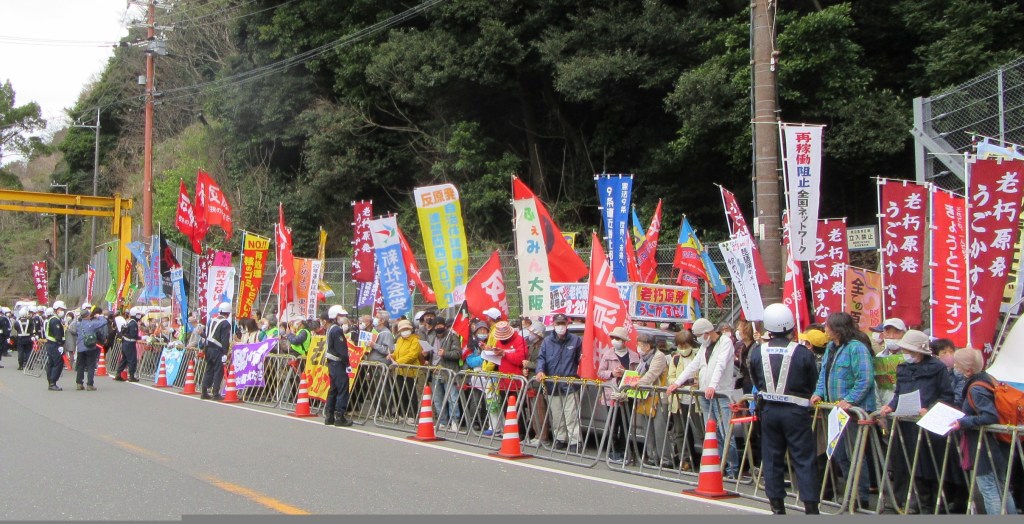ゲート内では、木原壮林(そうりん)さん、中嶌哲演(てつえん)さんら3人が3・20申し入れ・抗議行動参加者を代表して、申し入れ文書を読み上げて、関電側に手渡した。申し入れ文の最後には、「貴社が、私たちの再三の危険性指摘を無視して原発を稼働して、重大事故が起こった場合、それは貴職らの故意による犯罪であり、許されるものではないことを申し添えます」と。