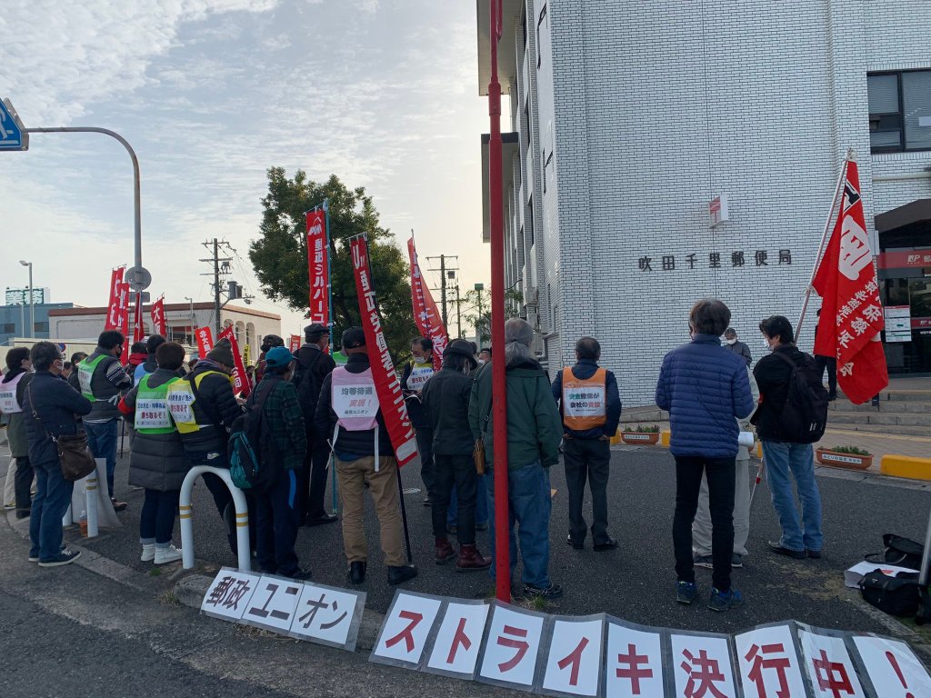 (写真は3月19日に、大阪の吹田千里郵便局でのスト 郵政ユニオン灘支部のツイッターより)
