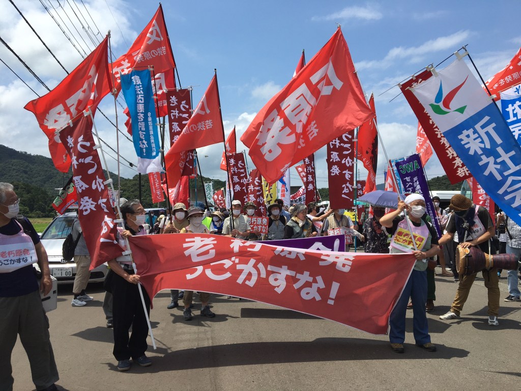 参加者らは美浜町の福祉施設「はあとぴあ」の駐車場に集合し、ここからJR美浜町駅近くの関西電力原子力事業本部前までデモ行進。原子力事業本部前で30分間にわたって抗議と申し入れをした。