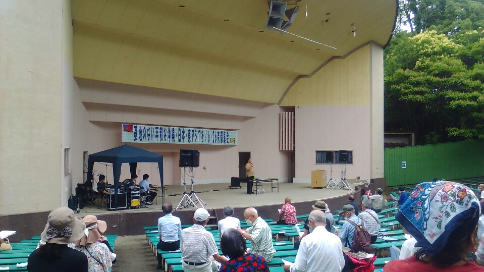 6月26日、京都市の円山野外音楽堂で、沖縄の反基地運動と連帯する集会が開かれ、260人が参加した。主催は京都沖縄連帯集会実行委員会。