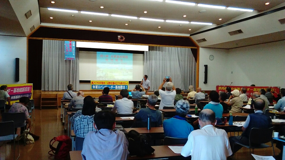 京都府京丹後市の経ヶ岬にある米軍Xバンドレーダー基地の撤去を求める集会が7月18日、京都市内で開かれ、京丹後市議の永井友昭さんが、米軍基地をめぐる状況を報告。6月から7月にかけて行われた日米合同演習は、京丹後市の米軍基地と自衛隊基地でも実施。自衛隊の隊舎屋上で米兵と自衛官らが銃を構えて集結し写真を示された。