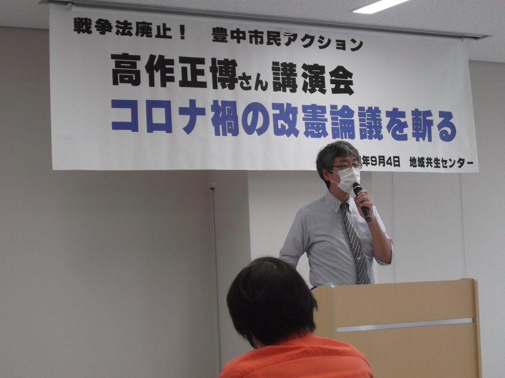 コロナ禍のもとの通常国会で衆参憲法審査会が開かれ、CM規制にかかわる立憲民主修正案を与党が丸呑み、改正国民投票法を成立させた。改正法、9条、緊急事態条項など高作正博さん(関西大教授)が話した。(9月、大阪府内。取材・文責/竹田)