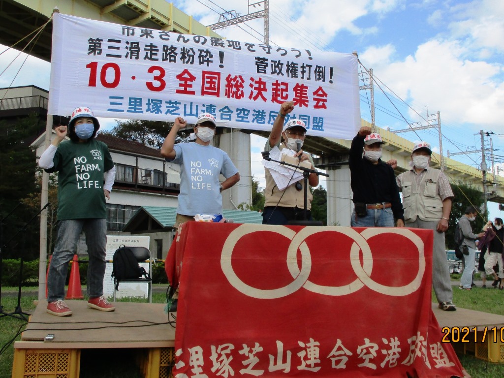10月3日、成田市の栗林公園で三里塚全国集会が開催されました。台風16号の影響で足元は濡れていましたが、台風一過の好天のもと、490人の参加。盛況でした。