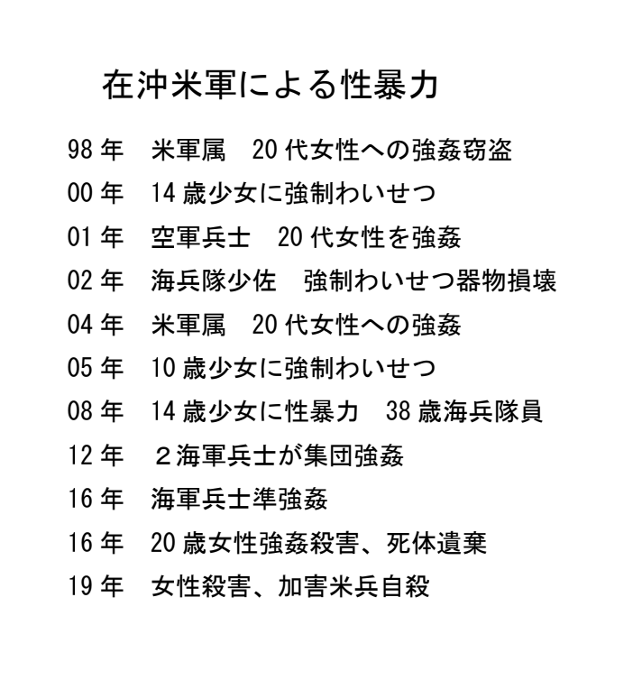 何も変わっていないのだ。日常的な暴力の現実、恐怖を伴う基地被害がずっと変わらず続いていたことを思い知った。