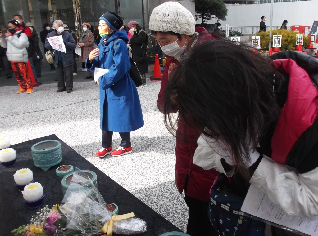 阪神淡路で犠牲になった6434人と、11年をむかえる東日本大震災の犠牲者への追悼。被災者の暮らしを元に戻すよりも「高層ビルの街づくり」という復興策とその後も借り上げ住宅からの追い出しなへの抗議。住まいをなくした多くの人たちが学校の廊下や公園のテントに暮らしているとき、「個人資産の保障はできない」と突き放した政府の言葉は忘れることができない。