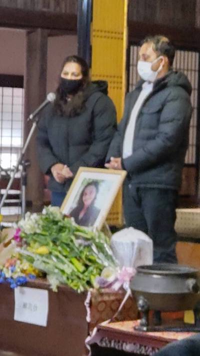 名古屋入管収容場で亡くなったスリランカ人ウィシュマ・サンダマリさんの1周忌の3月6日、「入管の民族差別・人権侵害と闘う全国市民連合」のよびかけで、札幌から四国高松までの全国10カ所で一斉追悼アクションが行われました。ウィシュマさんの遺骨が収められた明通寺(愛知県愛西市)で、妹のポールニマさんら遺族と支援の人びとによる法要が行われました。