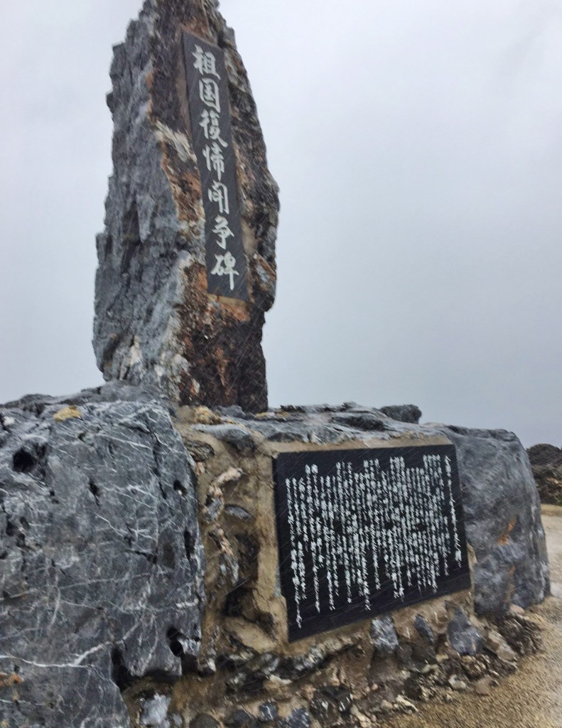 祖国復帰闘争碑は、沖縄の復帰闘争の歴史を語る象徴として1976年4月に、辺戸岬(へどみさき)に建てられた。碑文の一部を紹介する。