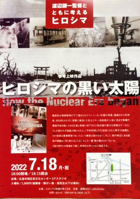 著作権の関係で監督の直接上映以外は鑑賞できない映画。「8・6平和の夕べ」にむけ貴重な機会を得ました。 (江田)