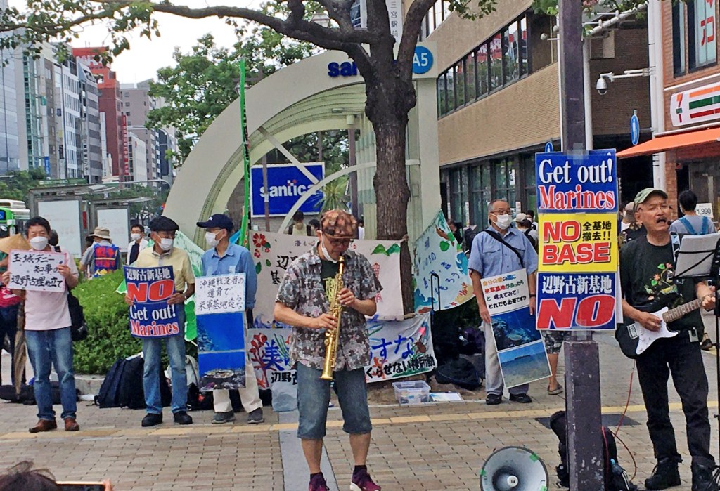 7月16日(土) 今にも雨が降りそうな空だったが、人通りは多い。参加18人、署名数25筆、チラシ配布160枚。札幌市の人が「北海道だけど署名してもいい?」と声をかけ、署名。チラシ配布に「左翼に用はない」と捨てぜりふを残し若者が通り過ぎた。東京の知人が甲子園にタイガース応援に行く途中に立ち寄り。参院選応援に沖縄に行った人が「3千票弱差で伊波さん勝利。知事選へ厳しい情勢が続く」と報告した。玉城デニー知事への支援を!(庄)