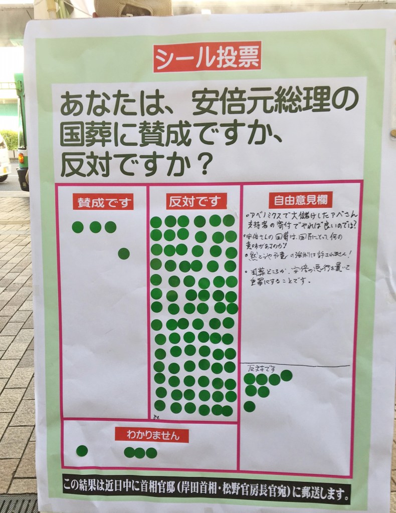 国政・憲法, 地方政治・住民運動 弔意の強制するな 兵庫県・神戸市 Date: 2022年9月10日Author: 未来への協働 0 コメント 9月5日、兵庫の市民団体が県知事・県教育長、神戸市長・市教育長に、「弔意表明、半旗掲揚などの要請を行なわない」「(国葬に)公費参加をしない」などを申し入れた。神戸市内で実施した国葬の賛否を問うシール投票の結果(写真)など、反対意見が多数を占めていることを具体的に示して、「法的根拠はない。安倍元首相がなぜ国葬か。自治体、学校等に通知を出すべきではない」と訴えた。 共有:Tweetいいね 読み込み中… 関連