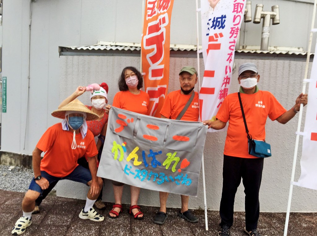 9月5日 朝9時から3時まで、名護市議候補大城さん支援行動。雨天だったがチラシ配布などを頑張った。