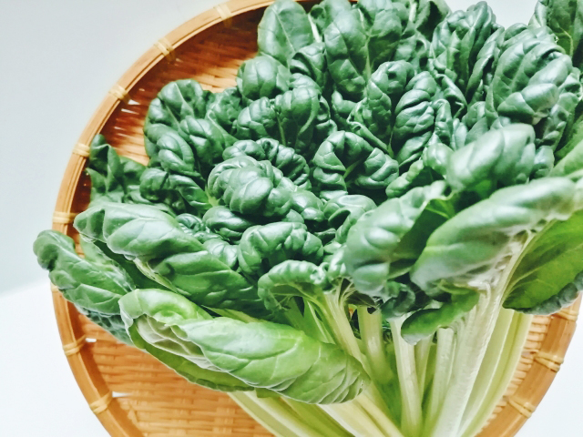 スーパーなどでは見かけることが少ないが、使いやすく栄養価が高い中国野菜。炒め物、おひたし、和え物、煮物、鍋、スープなんにでも合う。油と相性がよく火が通りやすい。茎と葉を分けて炒めるのがコツ。(淡)
