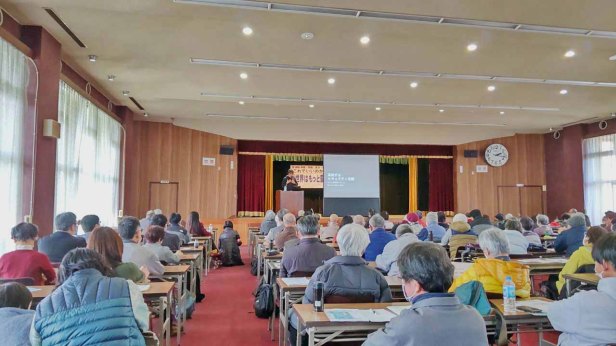 2月11日、滋賀県大津市で行われた映画監督の森達也さんの講演が行われた(写真上)。