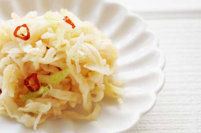今回は寒風にさら晒した切り干し大根が届いた。ハリハリ漬けにしてみる。産直の切り干し大根は太めのため、20分以上、水に晒して戻すのがコツ。細目に刻んだ昆布、醤油、酢、砂糖、塩で味付け。シャキシャキ、ポリポリとした食感で食が進む。ぜひ試してほしい。おやつやお酒のつまみにもおすすめ。 (淡)