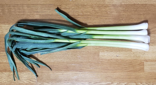 ニンニクが大きくなる前、葉が柔らかいときに収穫する。カルシウム、ビタミン、鉄分、アリシンが豊富な健康食。回鍋肉(ホイコーロー)、豚キムチ、チジミ、ぬた(すりつぶし、味噌、ゴマ、酢、砂糖で和える)などに。(淡)