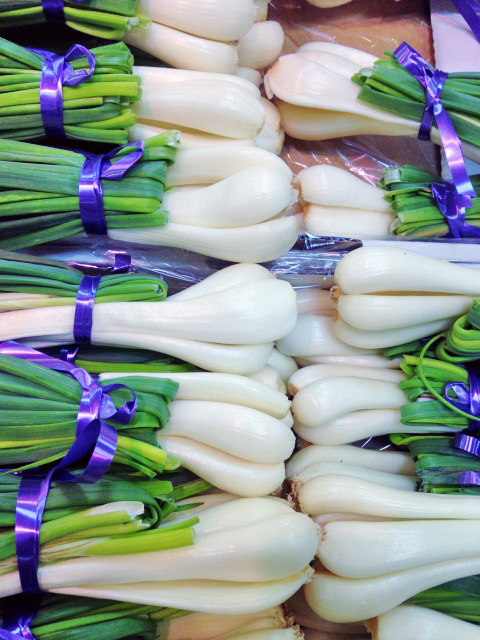 ほんのり辛く、シャキシャキと柔らかい。バター炒め、天ぷら、煮物にも美味しい。市場の人がヨーロッパ産の小型の玉ねぎ「エシャロット」の名前を拝借して売り出したが、今では本物のエシャロットが日本でも流通している。(淡)