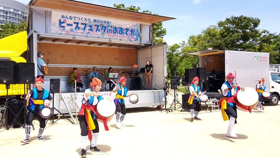 ピースフェスタinおおさか(第1回目)が5月21日の日曜日、扇町公園で開催された(写真)。暑くて熱中症が心配になった。