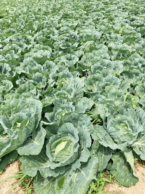 9月下旬まで続いた酷暑と干ばつ。「異常な日照りにネギ、里芋は酷い状態に。レタス、キャベツ、葉物も何度も蒔き直しするしかなく…」「やれることを全部やり、秋冬の野菜を届けたい」(市東孝雄さん)(淡)