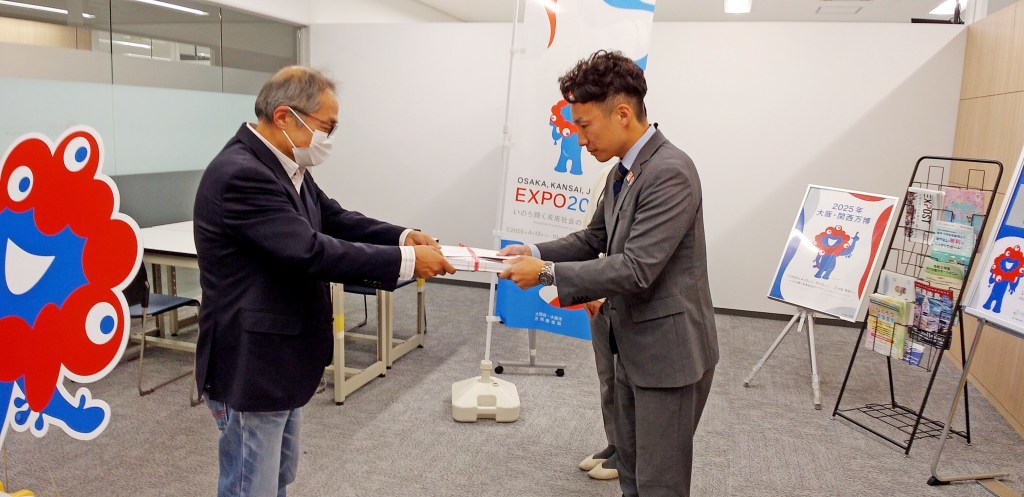 一方、大阪府市万博推進局への署名提出では、応接室で課長代理と係長が対応。撮影もOK(写真上)。どないネットでは第2次分の署名を12月中旬に提出予定だ。 (堀ちえこ)