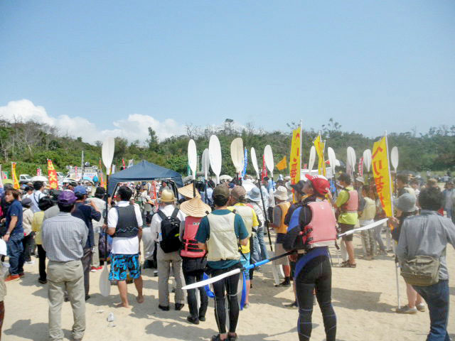 たたかいの初期は抗議船がひっくり返され、カヌーの仲間は怪我をさせられた。海水に顔を押し込まれた女性もいて、その乱暴なやり方を裁判に訴えた。なかでも「海保太郎」と名乗った隊員のことで中城海上保安部へ抗議に行った。そのためなのか、海保が隊員を入れ替えたのか、乱暴な隊員は少なくなっていた。