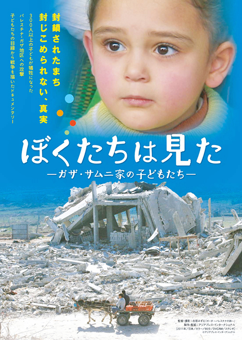 『ぼくたちは見た~ガザ、サムニ家の子どもたち』(古居みずえ/監督、制作)の上映会が小さな映画館で催された。ガザの子どもたちが見たこと、されたことを子どもたちの言葉で話している。瓦礫になったガザの光景が映し出された。破壊された町や村、上空を引き裂く戦闘機。戦車やブルドーザーに踏みにじられた野菜畑やオリーブの木。いまの光景かと見紛(みまが)えたが2008年、2009年の映像である。第二次大戦の後に入植したイスラエルは、以来パレスチナの土地を奪い人びとを追放し、版図を広げてきた。