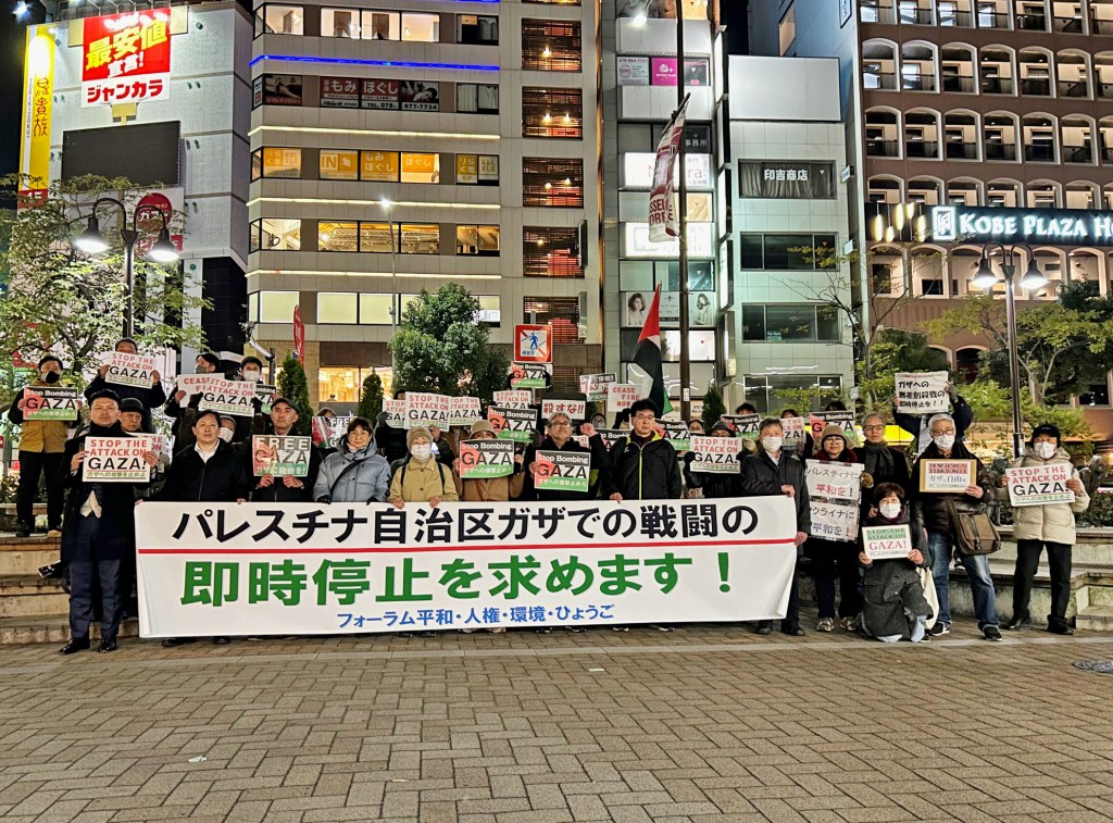 パレスチナ, 国際, 地方政治・住民運動 ガザ侵攻やめよ 即時停戦を Date: 2024年1月6日Author: 未来への協働 0 コメント 毎週(火)の神戸市・JR元町駅前スタンディング(県教組、自治労ほかフォーラム平和呼びかけ)。12月26日、7回目。ガザの死者は2万人を超え4割が子どもたち。40人余りが参加。通りがかりの男女2人づれがパネルを持って加わった。 共有:Tweetいいね 読み込み中… 関連