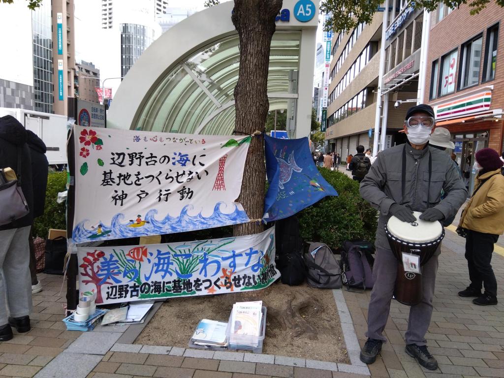 3月16日(土) 今日もジャンベが響いた。スピーチをしているところに通りかかった60代の男性に「読んでください」とチラシを渡そうとすると、「基地建設に賛成です」。若者にもチラシを渡し説明したけれど、ダメ。中国人らしい男女にチラシを渡すと、チラッと見ただけ、受け取らずに去った。ジャンベの演奏を見ていた60歳ぐらいの女性が署名。「子どもにも沖縄のことを伝えます」と。この日で486回目に。三宮マルイ前、1時~2時、毎週(土)、年中無休。どなたでも参加歓迎。(なかい)