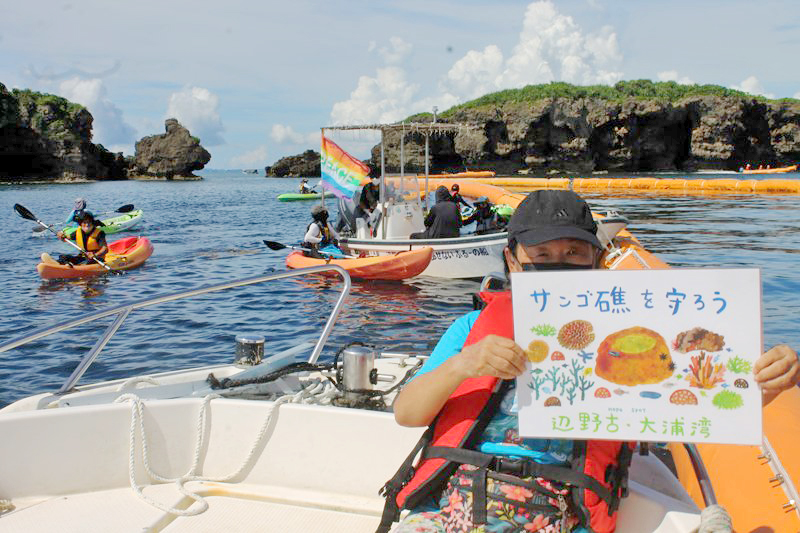 カヌーを拘束し、出発する浜に連れ戻しにくる海保のゴムボートを浜で市民が待ち受け、怒りの声をあげた。そのため海保ゴムボートは、浜に近づくのを躊躇(ちゅうちょ)し、私たちが「早く解放しろ」と要求すると、浜から離れた沖でカヌーを放した。
