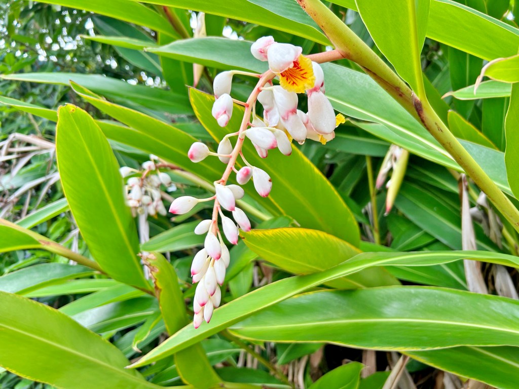 ♪六月二十三日待たず 月桃の花 散りました〜(『月桃』の歌)。文科省は、これまで不合格だった令和書籍の中学校教科書を検定合格させた。「沖縄を守るために…2800人以上の特攻隊員が散華した」と記述され、中学生たちは「動員」ではなく「志願」に。繰り返させてはならない。月桃は、白く薄いピンクの花を咲かせていた。(撮影:4月 辺野古、庄)