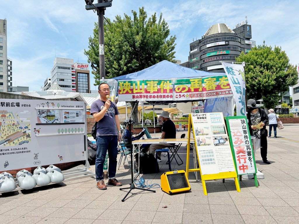 狭山再審を求める座り込み行動がとりくまれた。「狭山再審を求める市民の会・こうべ」が呼びかけ(6月8日、JR神戸駅前)。延べ20人が参加し、リレースピーチやチラシ配布、署名などで「石川一雄さんの無実、無罪、再審」を訴えた。「こんなこと、許されませんよね」と署名をしていく女性…。再審を求める署名は100筆を超えた。