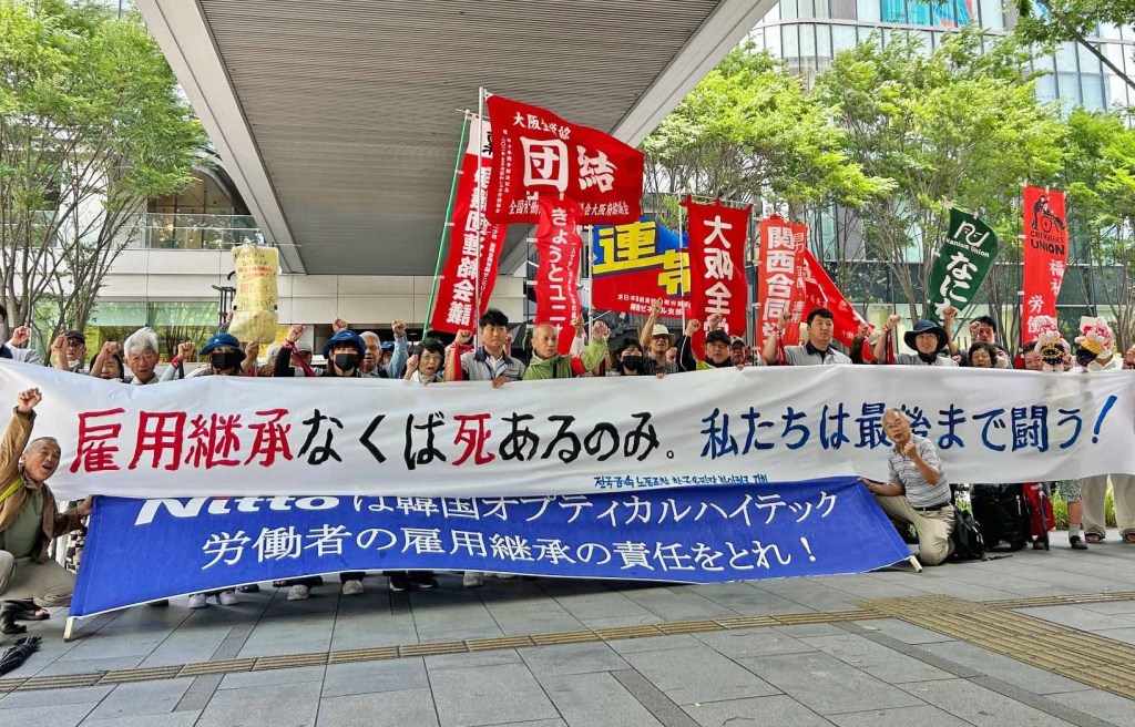 日東電工の100%子会社・韓国オプティカルハイテックで、2022年10月に工場火災が起こった。日東電工は火災保険金を受け取りながら工場を閉鎖し、機材は韓国の別の子会社に移し、労働者を全員解雇した。韓国オプティカル労組の11人が、日東電工に話し合いを求め、雇用の継承を訴えている。