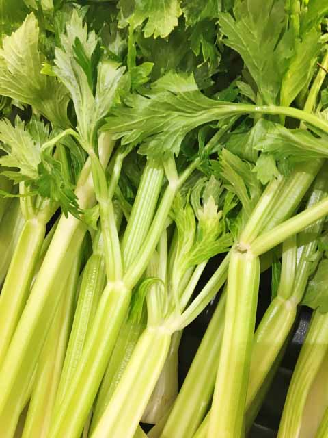 カレーにセロリ。葉やも茎もいっしょに、玉ねぎなどと軽く炒めて煮込めば夏カレーの定番に。みじん切りにして炒め、根元の部分の筋を取りスティックで生食もOK。人参スティックと合わせて彩りきれいに。(淡)
