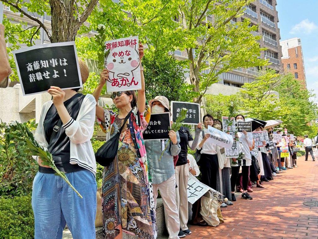 兵庫県議会の百条委員会が開かれた7月19日、兵庫県庁前では「斎藤県知事の辞任を求める」行動がとりくまれ、200人の市民が「斎藤知事はやめろ」と声を上げた。亡くなった元県民局長の死を悼む喪章と菊の花も用意され、「百条委員会の設置に反対した維新と公明会派に抗議する」「県民はもっと声をあげよう」「おねだり、パワハラの真相解明を」などスピーチが続いた。