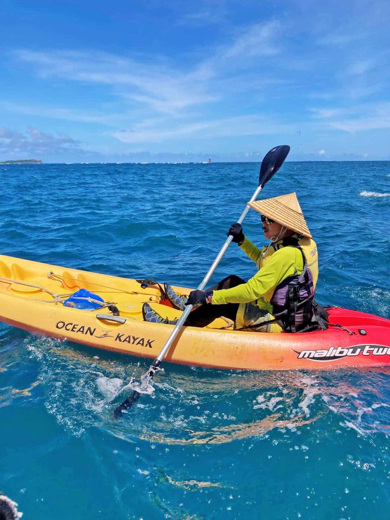 「辺野古ってありますよね。カヌーで抗議するため通っています」「ああ辺野古へ」「どう思われます?」「(普天間基地がある)宜野湾の人が可哀そうだから仕方ないかな」「でも普天間の滑走路は2200メートル。辺野古は1800メートル」「そうなの!」「稲田という元防衛大臣が『辺野古ができても普天間の代わりにはならない』と言っていた」「そうなんですか?」「だから辺野古は普天間移設ではなく、新基地をつくり米軍にプレゼントする。深い大浦湾側に軍港もつくる。そばに弾薬庫もある。核兵器を持ち込めば、すぐ積める」「なんで日本はそんなことするの?」「日本は一度決まると駄目だとわかってもやめない、そんな国ですよね」「そうだね」。