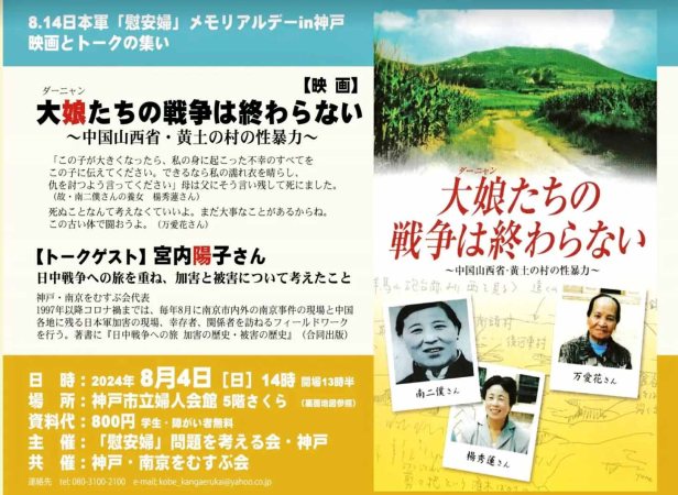 中国山西省で日本軍による性暴力被害を受けた女性たちの闘いを記録した映画『大娘(ダーニャン)たちの戦争は終わらない』(2004年)が8月4日、神戸市内で上映されました。