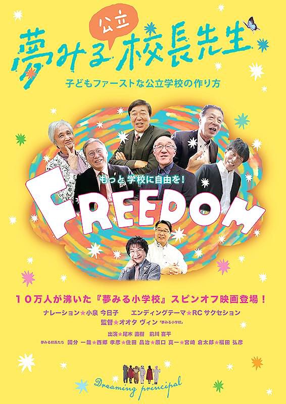 自主上映会で見ました。とても面白い映画でした。「校則ゼロ」「宿題ゼロ」「通知表なし」「教科書なし」「校長室なし」…、子どもたちのために、さまざまなチャレンジを成功させた校長先生たちが登場し、観(み)る私たちを元気にさせてくれます。