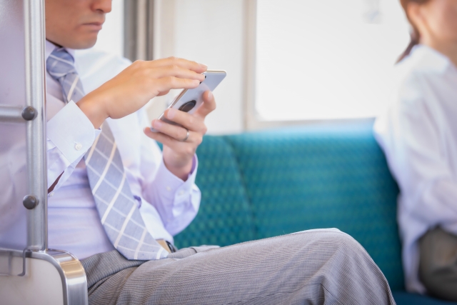 電車の座席に座ると無言の