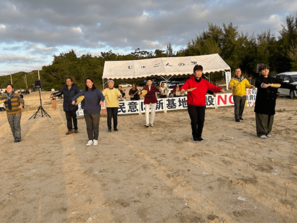元旦は、辺野古の浜で初日の出を迎えることができました。浜では、雲間から差し込む日の光を迎えるや、「かぎやで風」が奉納されました。そこに、私の気持ちを重ねました。