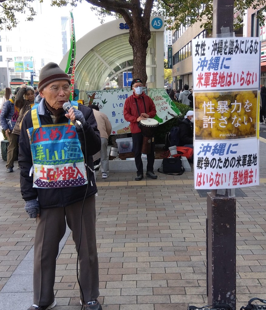 署名は積極的な人が多く22筆。娘さんと初老の女性、ご両親が沖縄の出身、戦前にヤマト、本土に来て苦労された。「沖縄の現状は、けしからん」と怒り、「私たちは、何をどうしたらいいのか」と訴えた。
