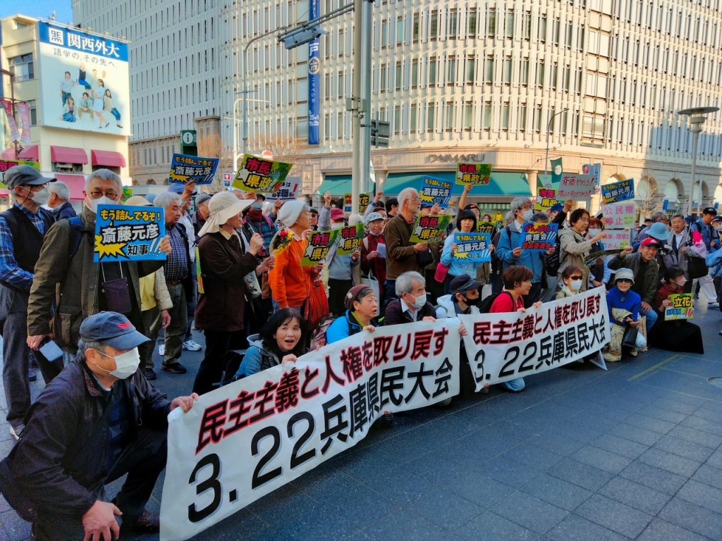 昨年9月、「斎藤知事の辞職を求める緊急県民集会」に600人、11月の斎藤再選、12月「兵庫知事選挙に異議あり真相究明集会」には、300人の会場に1600人を超える人たちが集まり、付近の路上に長蛇の列となった。