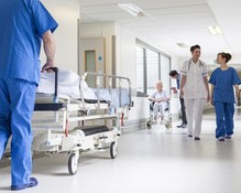 そのとき、女性の看護師さんが3人で迎えにきてくれました。自慢じゃないけど重いのに大丈夫かなと思っていたら、私の寝ているベッドの左横にベッドの半分ぐらいの幅のストレッチャーを並べて着け、固い板状のものをストレッチャーとベッドの間に…。私の身体は横向きにさせ、身体の下にその板を挟み、合図とともに滑らせてストレッチャーに移しました。初めてのことで感心するやら、びっくりするやら。
