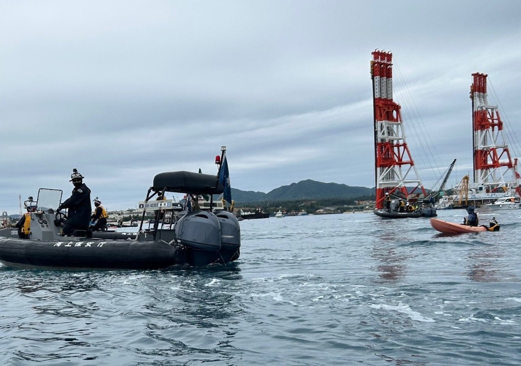 大浦湾にはSPC船6隻、トレミー船、ガット船、鋼管杭うち作業船、作業ヤード建設の作業船、タグボートなどがひしめき合っている。これまでの新基地建設の進捗状況は、比較的に浅瀬の辺野古側の埋め立てが、ほぼ終了している。それでも全工程の20%にも届いていない。あまりにも杜撰な設計変更に対し「ノー」とした沖縄県の見解を無視し、国が「代執行」して1年3カ月、大浦湾の建設予定地には水深90メートルにマヨネーズ状軟弱地盤が確認されている。にもかかわらず国は一方的に、科学的な根拠を示すことなく「70メートルで十分」と工事を強行している。国は、完成まで12年、費用は9300億円と言っていたが、すでにその予算80%は執行済みである。沖縄県は完成までに約2兆3000億円が必要になる試算している。