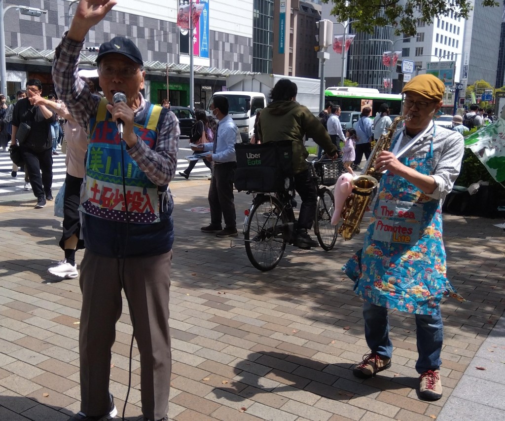 若い女性に、「辺野古の工事でジュゴンがいなくなりました」と説明すると、「私の名前には海という字が入っている。海洋汚染には関心を持っています」と話した。