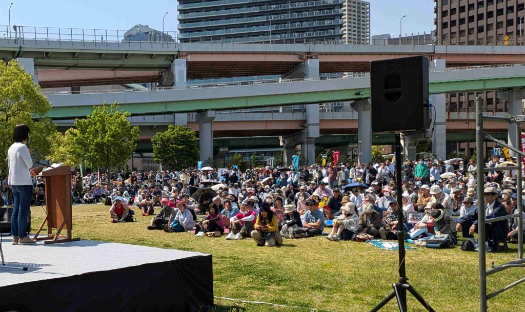 「戦争させない、9条壊すな!5・3兵庫憲法集会」が開かれた(三宮・みなとの森公園)。約2000人が集まった。川口真由美さんの反戦歌、平和の歌でスタート。総がかり行動兵庫、9条の心ネットワークの羽柴修弁護士が「パレスチナやウクライナへの攻撃、戦争など、世界は惨劇が続いている。厳しい現状に、憲法9条を守るよう頑張っていきましょう」とあいさつした。