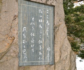 『早春賦』です。口ずさんだこと、ありますか。中学校の教科書にも取り上げられているそうです。季節外れの一服の清涼剤?として、記してみました。作詞の吉丸一昌氏は、長野県安曇野の雪解け風景に感動して、この「早春賦」の詩を書いたと言われていま す。安曇野の寒さと、春の暖かさを歌った歌詞とされているそうです。この歌詞がつくられたのは、1913年。大逆事件の3年後に歌われたものです。(『風音』目取真俊著より)。