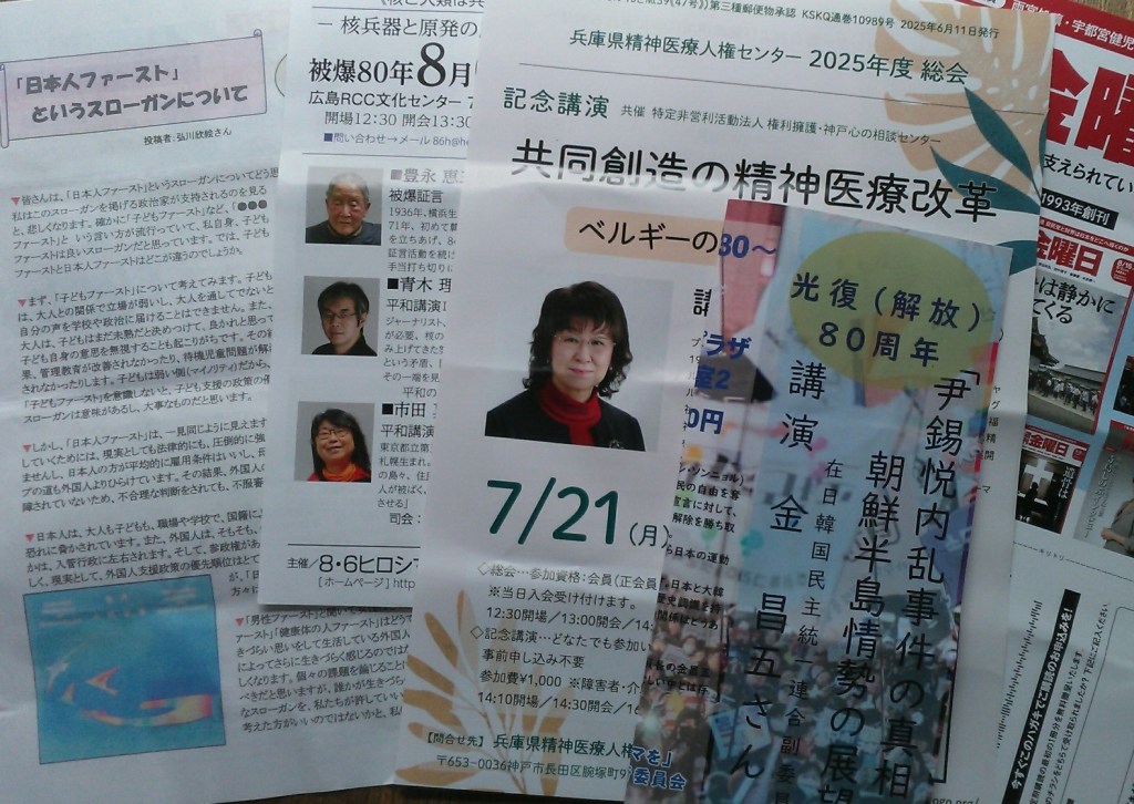交替でマイクを持ちアピール、斎藤知事問題、沖縄、参議院選挙、原発反対、汚染土の兵庫持ち込み反対などを訴えた。参議院選挙が始まり、街頭も「熱くなって」きた感じ。