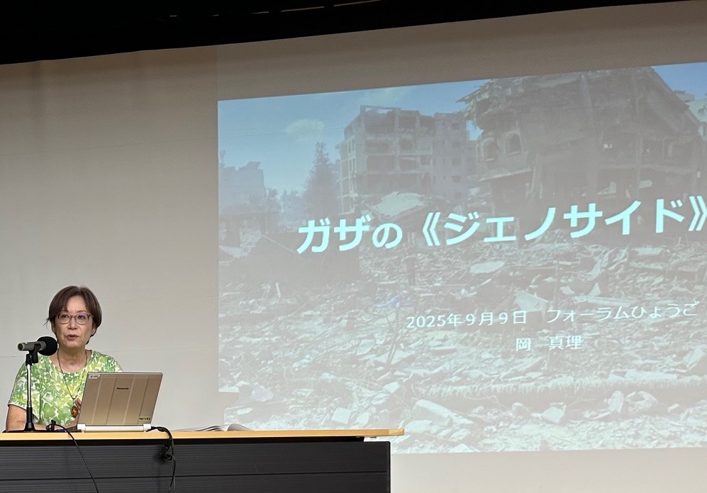 岡真理さん(早稲田大教授・京都大名誉教授)の「ガザの《ジェノサイド》とは何か」の講演を聞いた(9月9日、神戸市内/主催:フォーラム平和・環境・ひょうご)。岡さんは、次のように話した。