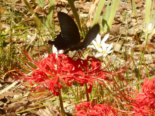 文化 まい・しょっと Date: 2025年9月27日Author: 未来への協働 0 コメント なかなか死ねない彼岸花咲く(山頭火)の句が、似合う赤い花の鮮やかさに、黒い蝶…。墓地の近くなどに咲いていたり、球根に毒があり、死のイメージもある。彼岸に花が咲く不思議さを思う。(な) 共有:Tweetいいね 読み込み中… 関連